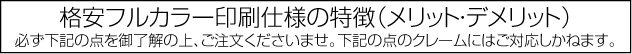 WEB印刷の特質上、色校正は承っておりません。印刷機のコンディションによりCMYKで数%の誤差や濃淡が出る場合がございます。初回ご注文時とリピート注文及び同注文ロット内で、印刷色に差異が発生する場合がございます。要確認